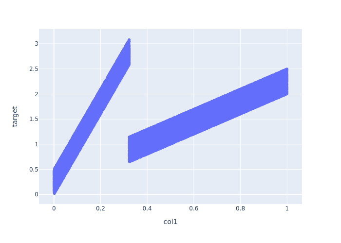 df_valid = pd.DataFrame({"col1": x_valid.ravel(), "target": y_valid.ravel()})